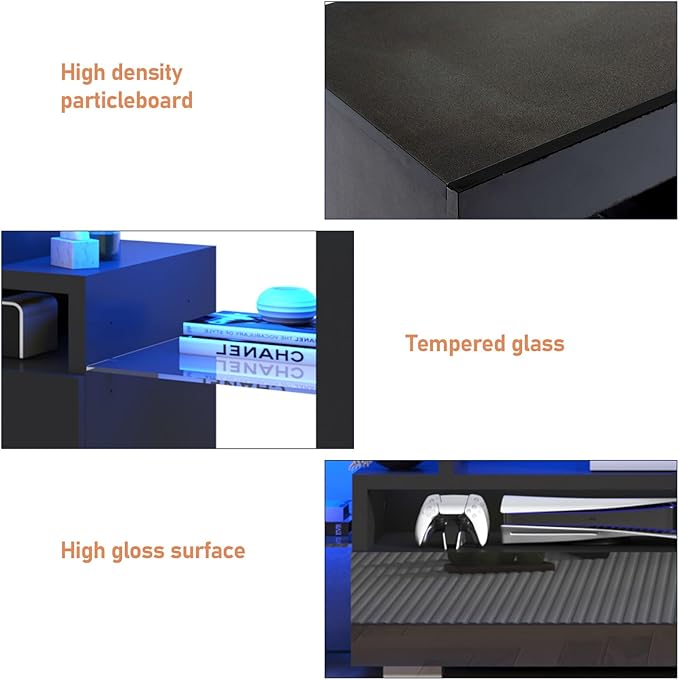 - 【Smart DIY RGB LED System】The tv stand equipped with 24-key remote control, you can enjoy 16 colors of RGB lights and 6 change modes by remote control or mobile app. The LED system with memory function allows you to save your favorite dazzling colors and make your room more enjoyable.