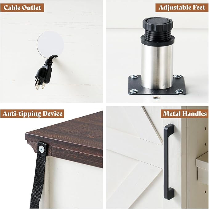 - 【2 Sliding Barn Doors】Easily conceal side cabinets or center shelves with smooth-gliding barn doors. X-shaped design enhances rustic charm, while sturdy rail ensures durability and effortless movement