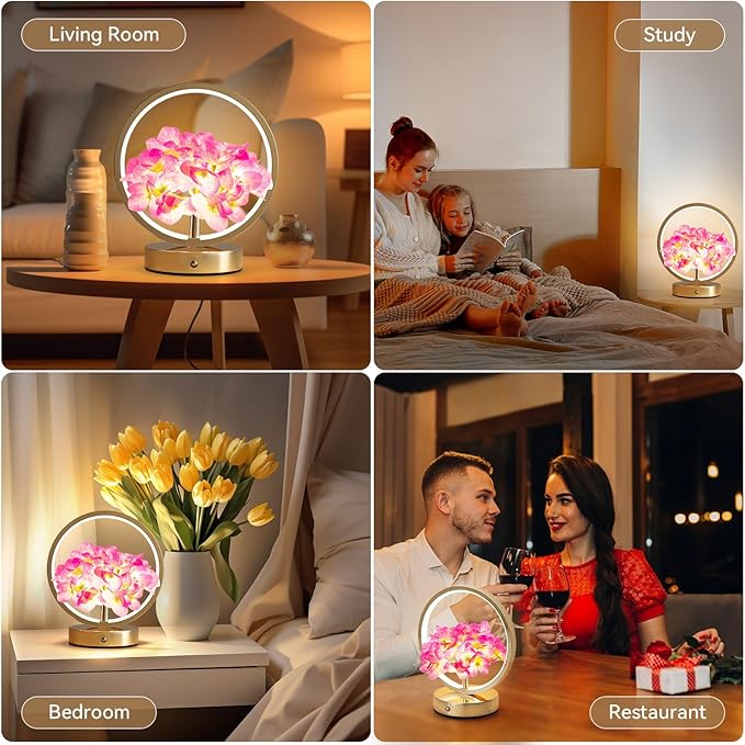 - 【Gifts for Mom Hydrangeas Decor lamp】Hydrangeas lamp is made LED light source combined with silk flowers,which makes the artificial flower landscape with a new light source and gives new life to the artificial flowers.Metal base very durable; Built-in rechargeable battery, no line hanging around, you can hold the Sunflower light on your hand; Designed with USB charging port, and you can charge this Sunflower on any USB devices.