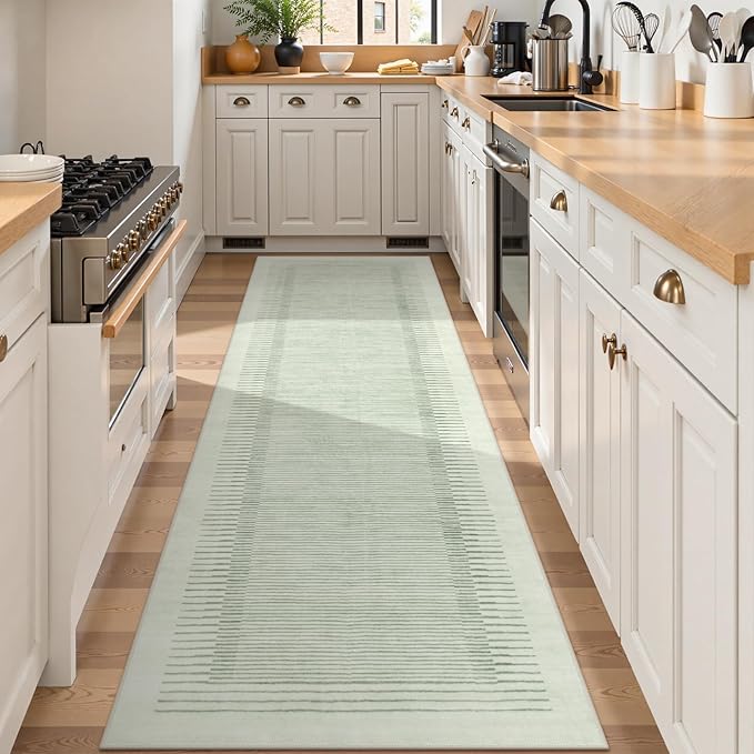 - 【Modern Minimalist Style】This modern green runner features a smooth striped pattern, which fits perfectly with simple yet elegant modern home décor. It infuses stylish artistry into every space-bathroom, bedroom, kitchen, hallway, laundry