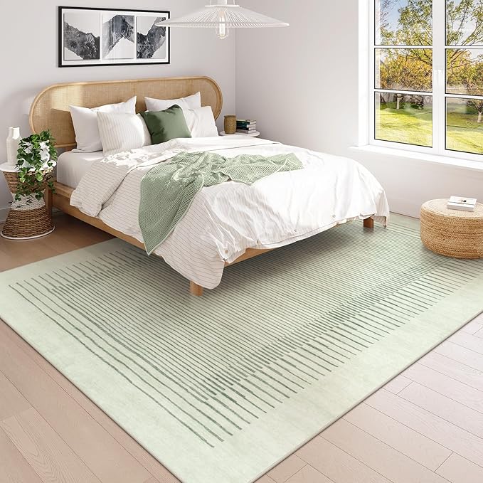 Morebes Green 8x10 Area Rug for Living Room, Modern Geometric Washable Bedroom Rugs Non Slip, Striped Soft Low Pile Indoor Carpet for Dining Room Home Department(8'x10',Sage Green)