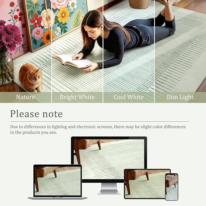 - 【Modern Minimalist Style】This machine washable rug features a smooth striped pattern, which fits perfectly with simple yet elegant modern home décor. It infuses stylish artistry into every space-living room, bedroom, kids room, nursery