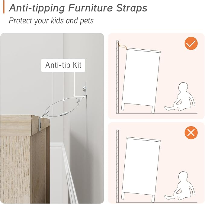 - Protect Your Kids: This Closet Storage Organizer is made of durable engineered wood with solid wood legs for long-term use. Each leg has non-slip pads which can protect your floor and furniture from scratch. Heavy but safe with the strong anti-tip kit, you can place it in the nursery or kids' room without any concern
