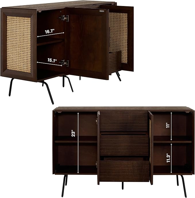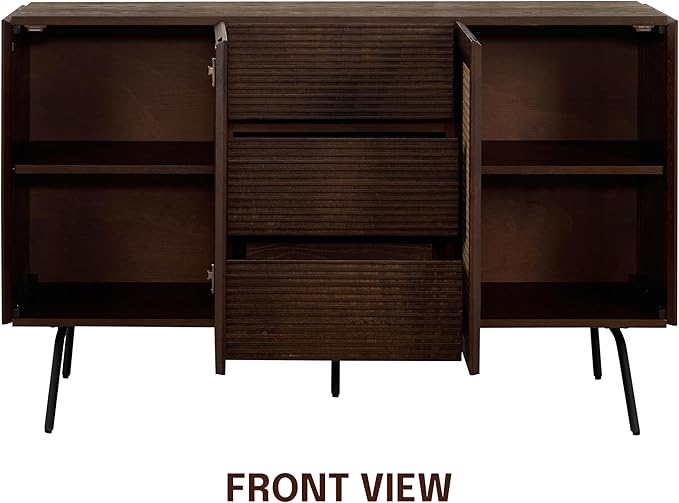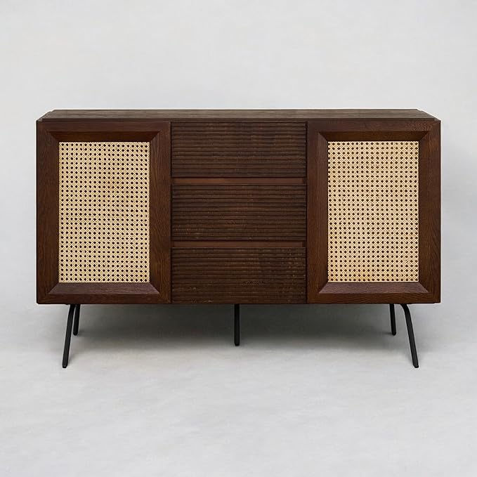 - AMPLE STORAGE SPACE – With two rattan-paneled cabinet doors and three spacious drawers, this sideboard offers the perfect balance between concealed storage and easy access to everyday essentials.