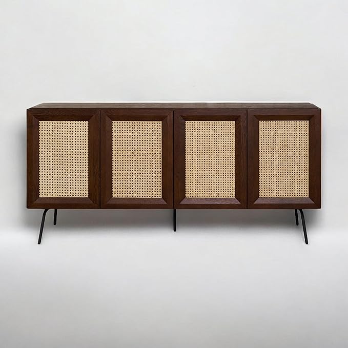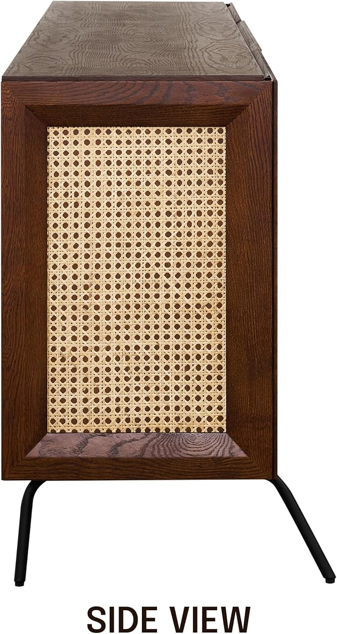 - TIMELESS MODERN DESIGN – A sleek black wood finish combined with natural rattan panels creates a stunning blend of contemporary and rustic aesthetics, making this sideboard a stylish focal point in any space.