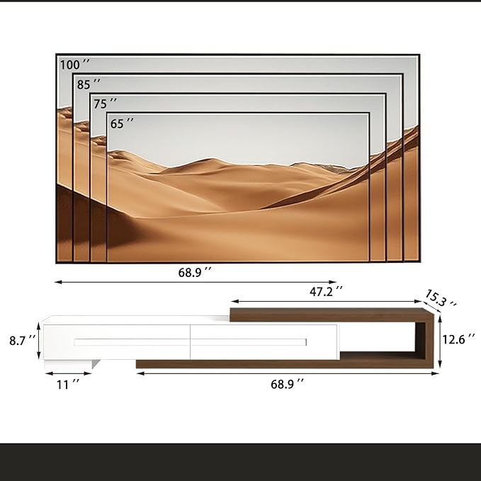 - Versatile Size: The 82-110" Extendable TV Stand is designed to accommodate various TV sizes, including up to 120 inches, making it the ideal modern entertainment center for any living room or bedroom.