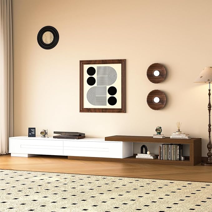 - Ample Storage: With two spacious drawers, this Extendable TV Stand offers enough storage space to organize all your media accessories, DVDs, and gaming equipment, keeping your living area tidy.