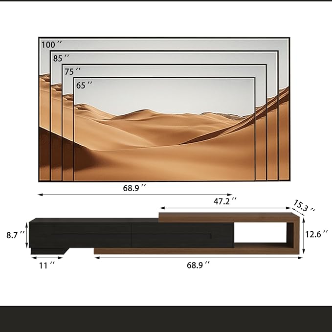 - Versatile Size: The 82-110" Extendable TV Stand is designed to accommodate various TV sizes, including up to 120 inches, making it the ideal modern entertainment center for any living room or bedroom.