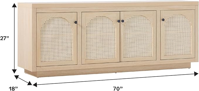 Walker Edison Sasha 4-Door Sideboard Buffet with Arched Rattan Panels, 70 Inch, Coastal Oak