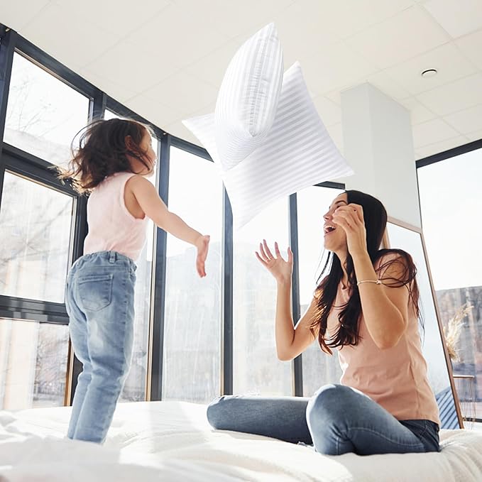Artscope Synthetic Down Pillow Insert, 24x24 Down Alternative Throw Pillow Insert. Ultra Soft Fluffy Sleeping Pillow with 100% Cotton Cover, Decorative Pillows-Striped