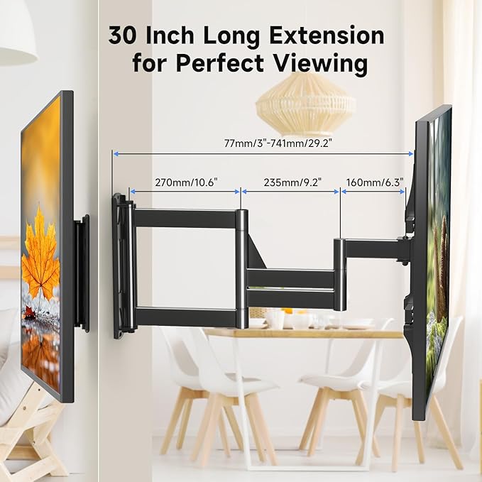 - 30" Long Extension Arm for Maximum Flexibility – Extends 30 inches for optimal viewing angles and retracts to just 3 inches for a space-saving, sleek look. The triple folding arm design allows smooth adjustments from room to room.