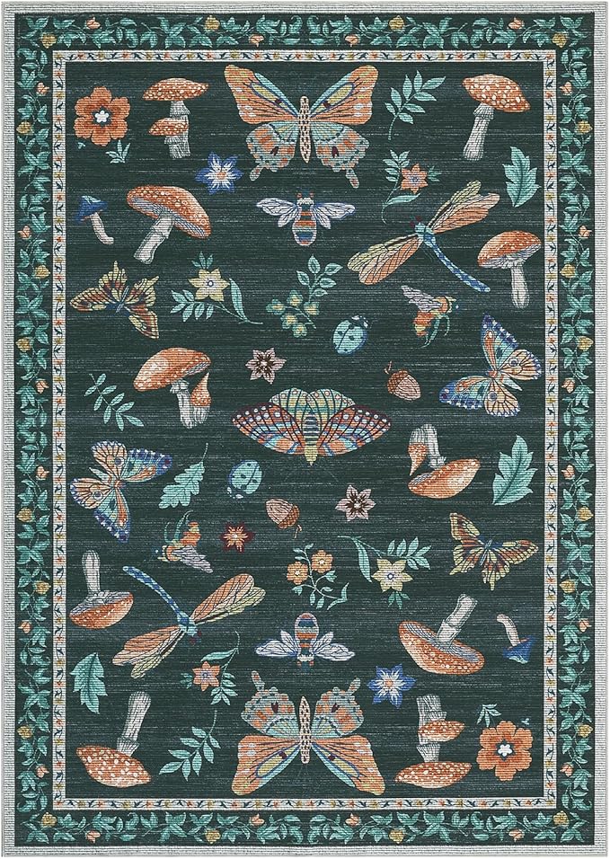 - 【Mushroom Insect Design】This nature-themed rug features mushroom, insect, and plant patterns, blending natural elements with artistic charm. Its ultra-thin profile allows easy placement under furniture while enhancing any room's style.