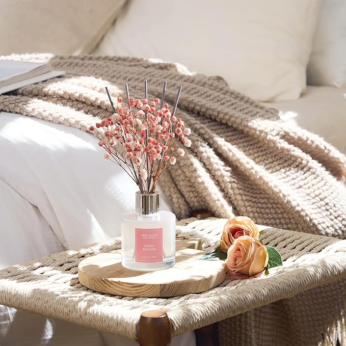 Airkeep Reed Diffuser Set, 3.38 fl oz (100 ml) - Cherry Blossom Oil Diffusers with 8 Reed Sticks, Home Fragrance Reed Diffuser for Bathroom Shelf Decor