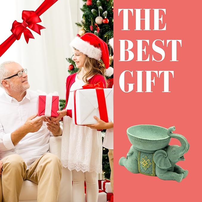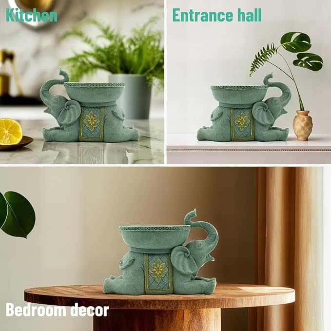Elephant Decor Resin Sculpture with Tray – Antique Style Animal Figurine for Home, Office, Bookshelf, TV Stand – Unique Gift for Women, Moms, Friends(Green Elephant Tray)