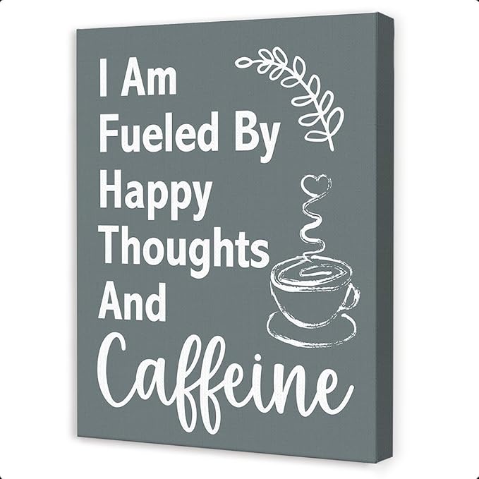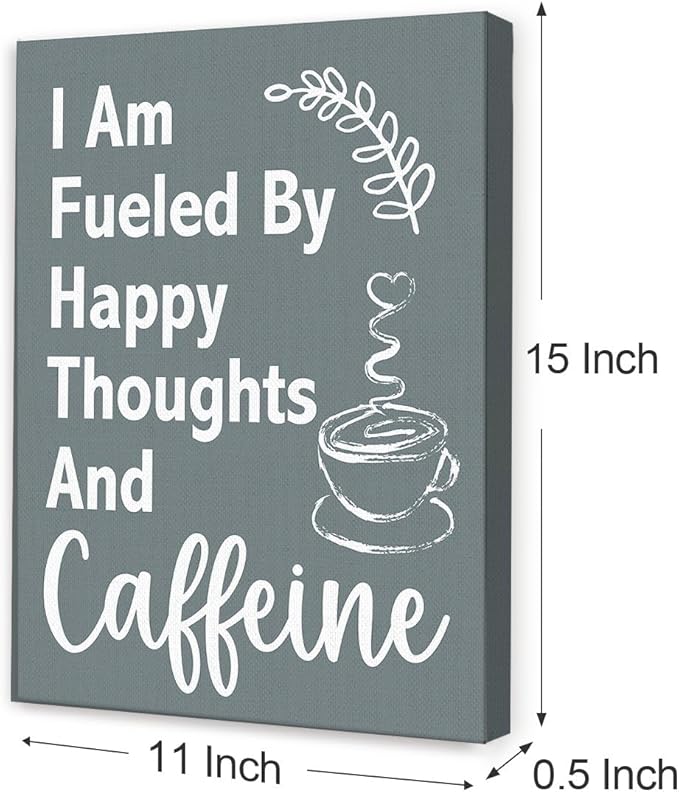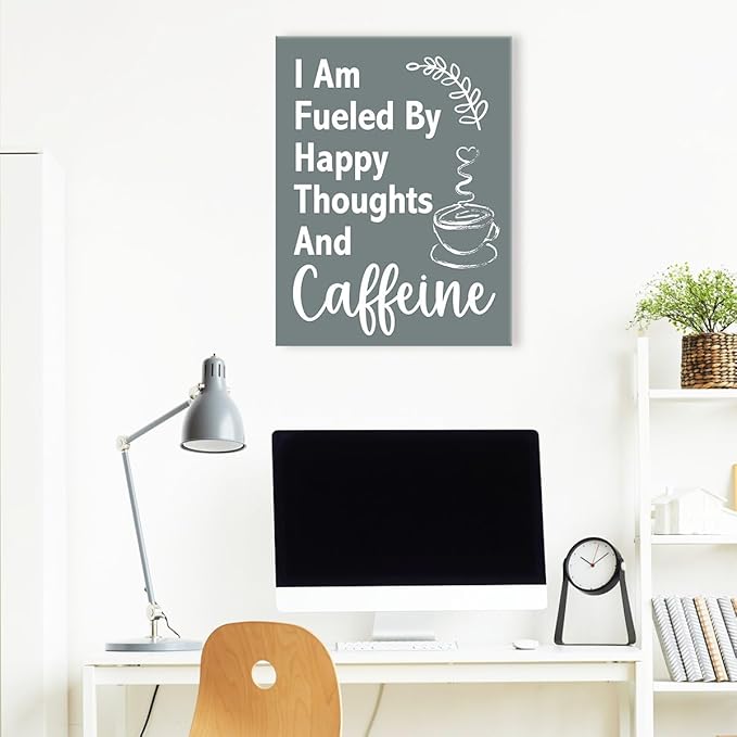 Funny Wall Art For Office,I Am Fueled By Happy Thoughts And Caffeine Canvas Paintings Framed For Home Office Workplace Wall Art Decor