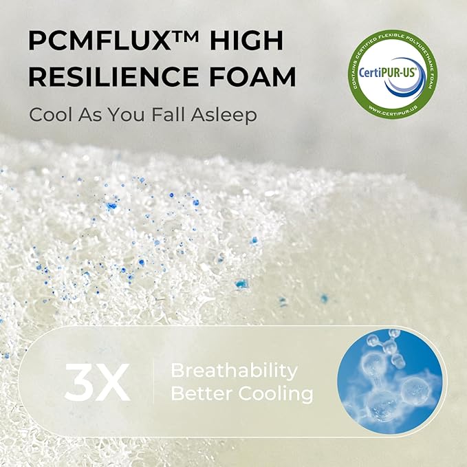 - Enhanced Breathability for Ultimate Comfort - The CoolNest cover incorporates 3D-woven technology, featuring an ventilation pores design that improving breathability by 35% compared to standard fabrics. Also, the PCMflux high-resilience foam with hollow structure promotes 3X airflow. Thereby these help to wick away moisture and adapt to body temperature for a cooler, drier sleep surface.