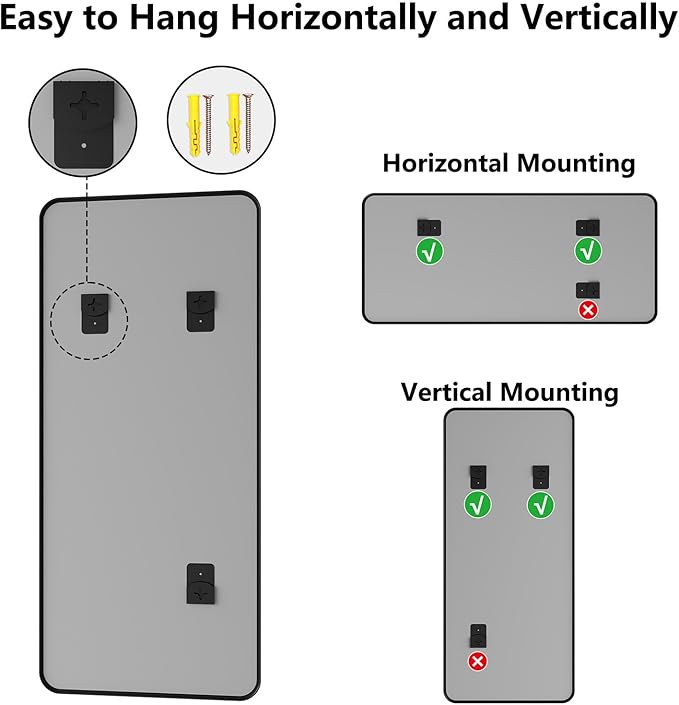 - No-Fuss Installation – Ready in Minutes: Comes with all hooks/hardware for vertical or horizontal hanging—no extra tools needed. Install this bathroom sink mirror before your coffee gets cold! Perfect for renters, DIYers, or anyone who hates complicated setups. Transform your space in minutes, whether above the sink, in the entry, or living room.
