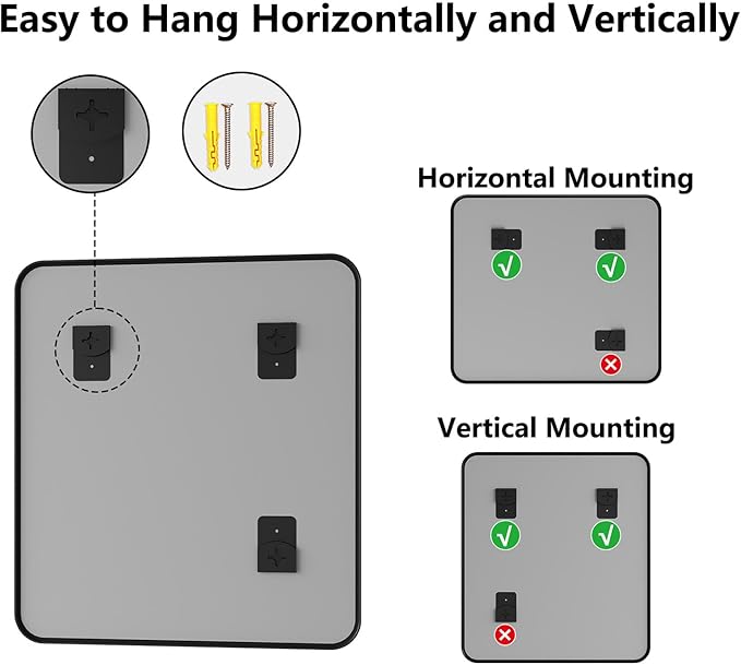 - No-Fuss Installation – Ready in Minutes: Comes with all hooks/hardware for vertical or horizontal hanging—no extra tools needed. Install this bathroom sink mirror before your coffee gets cold! Perfect for renters, DIYers, or anyone who hates complicated setups. Transform your space in minutes, whether above the sink, in the entry, or living room.