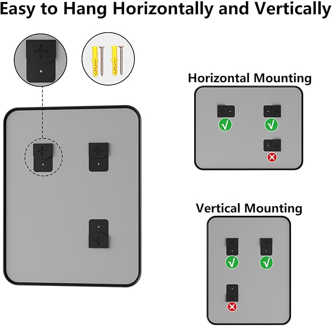 - No-Fuss Installation – Ready in Minutes: Comes with all hooks/hardware for vertical or horizontal hanging—no extra tools needed. Install this bathroom sink mirror before your coffee gets cold! Perfect for renters, DIYers, or anyone who hates complicated setups. Transform your space in minutes, whether above the sink, in the entry, or living room.