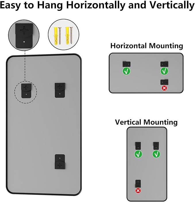 - No-Fuss Installation – Ready in Minutes: Comes with all hooks/hardware for vertical or horizontal hanging—no extra tools needed. Install this bathroom sink mirror before your coffee gets cold! Perfect for renters, DIYers, or anyone who hates complicated setups. Transform your space in minutes, whether above the sink, in the entry, or living room.