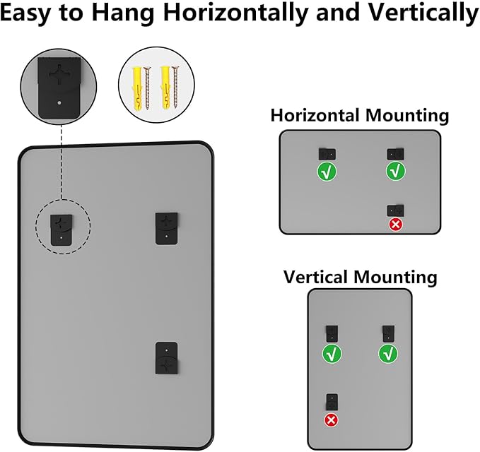 - No-Fuss Installation – Ready in Minutes: Comes with all hooks/hardware for vertical or horizontal hanging—no extra tools needed. Install this bathroom sink mirror before your coffee gets cold! Perfect for renters, DIYers, or anyone who hates complicated setups. Transform your space in minutes, whether above the sink, in the entry, or living room.