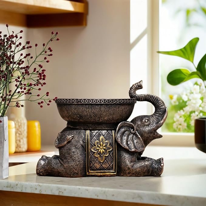 - Elegant and Unique Design – Carefully crafted with an antique aesthetic, this elephant sculpture features intricate detailing and artistic charm. The elephant, lying down with a tray on its back, blends function with elegance, making it a true statement piece.