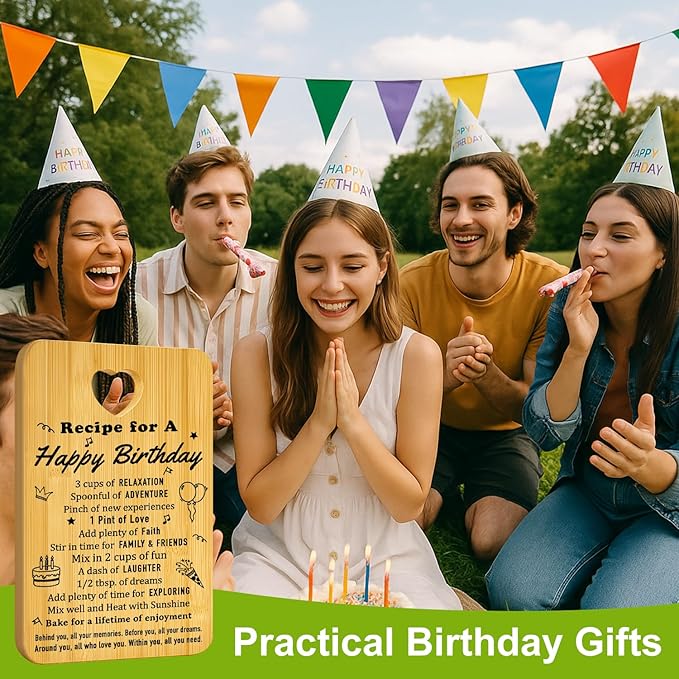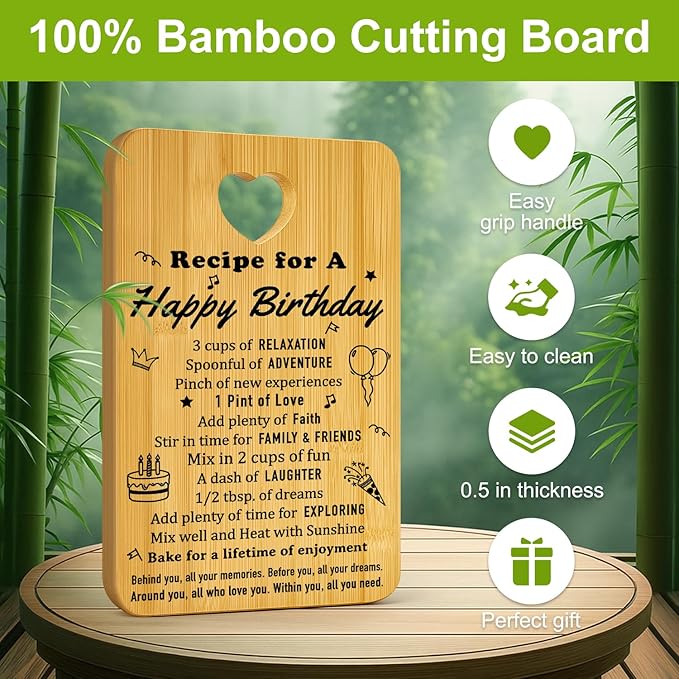 - Best Birthday Gifts for Women Men: Our bamboo cutting board features bold black lettering that expresses your love to friends and families, which is fade-resistant and built to last. With its heart-shaped handle for easy carrying, this birthday gifts enhances every cooking experience by offering convenience and portability.