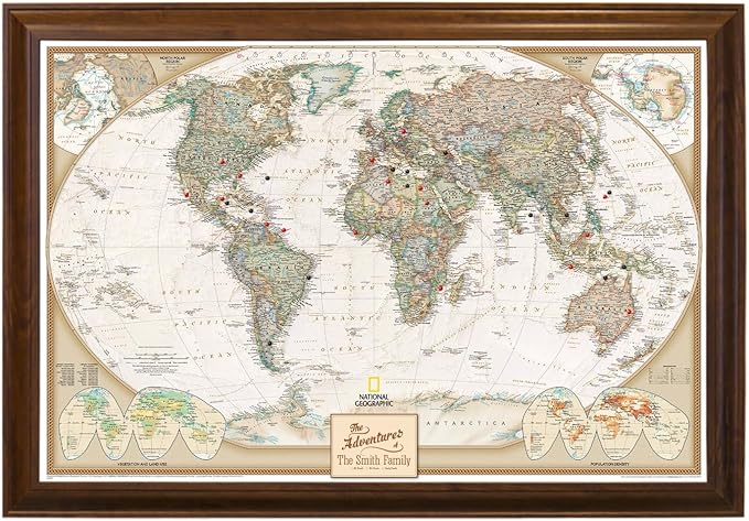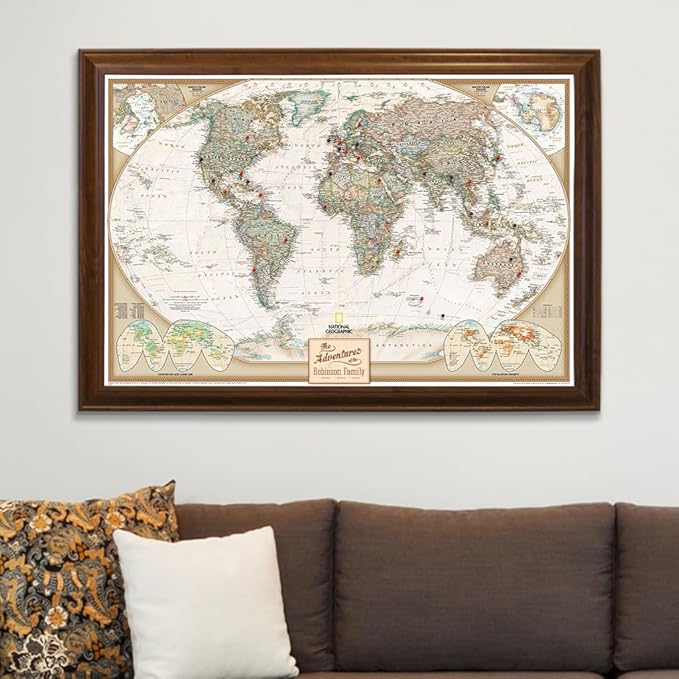 - Crafted for Quality and Durability – Professionally printed on premium canvas and framed by hand in the USA, this push pin travel map is ready to hang and made to last for years of use. Framed Map dimensions are 27.5" x 39.5"