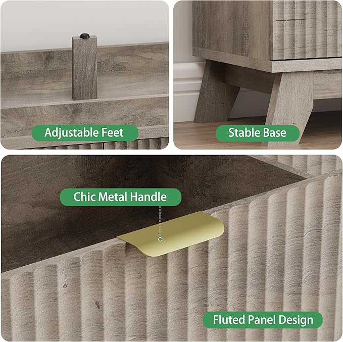 - 【Modern Chic Appearance】The unique wave-like fluted panel enhances the texture and elegance of this bedroom dresser. The thick table top features natural wood grain that complements the natural oak finish. The wide metal handle and splayed base legs add a modern touch, creating a personalized and distinctive appearance
