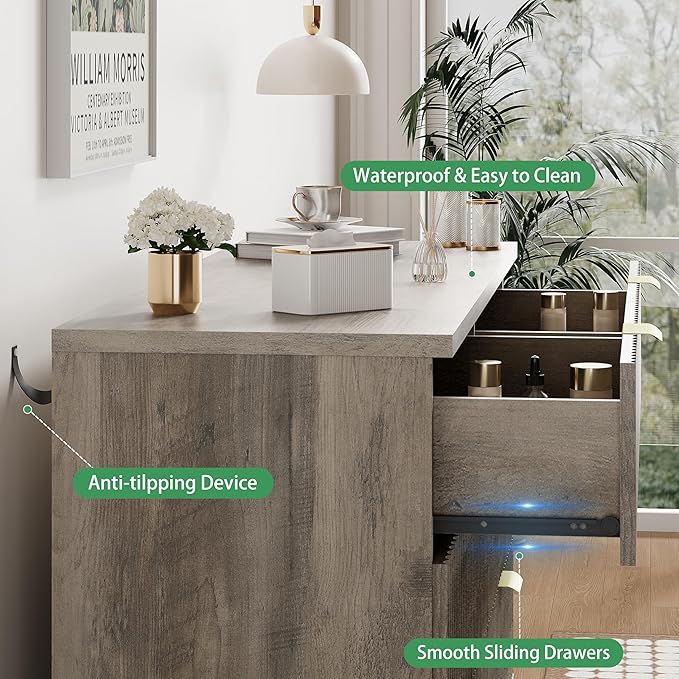 - 【Solid Material & Sturdy Construction】The dressers & chests of drawers are constructed from optimal MDF, P2 engineered wood and coated metal handle which not only has exquisite texture, but also ensure long-term use and scratch resistant. Each drawer holds up to 35 lbs and the thickened tabletop can support up to 180 lbs. For easy cleaning, just wipe with damp cloth and get it air-dried