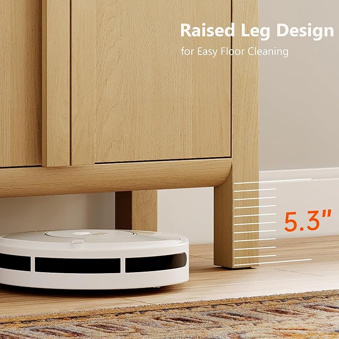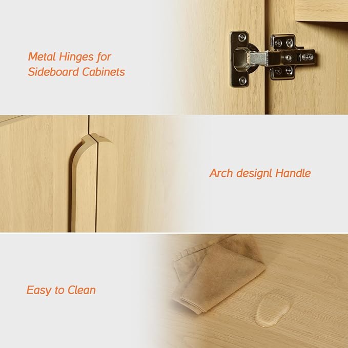 - French Vintage Style & Arched Design: Finished in light wood tones, this farmhouse sideboard brings a warm, With unique rounded handles and smooth curved edges, this modern sideboard adds a soft, refined aesthetic.Vintage vibe while maintaining clean modern lines. Ideal as a wooden cabinet for living rooms, kitchens, or entryways.