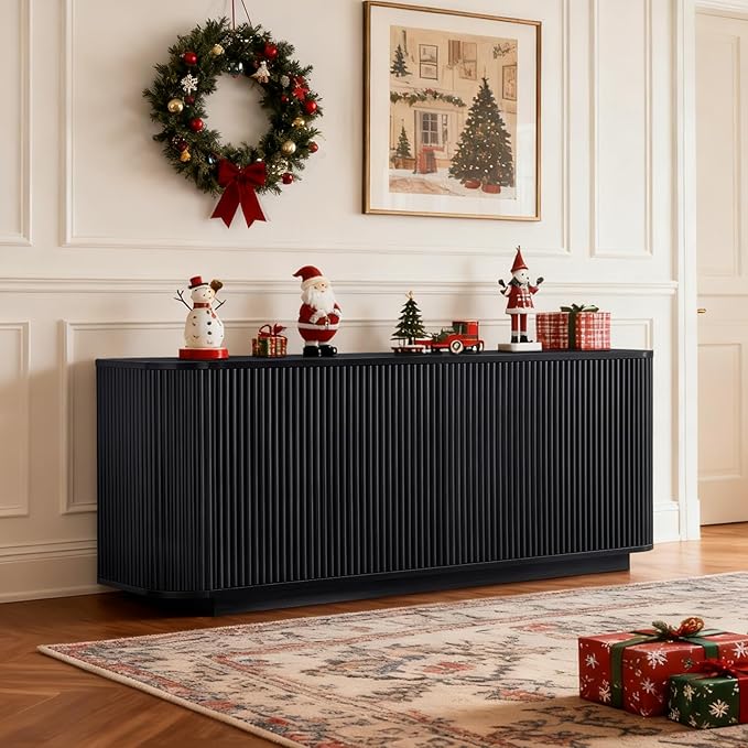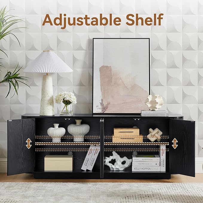 - 【Morden Fluted Elegant Look】Elevate your space with this sleek Buffet Sideboard Cabinet featuring smooth rounded corners and a stylish fluted wood texture. The wave-pattern cabinet face and curved side panels create a minimalist adds a touch of sophistication to any dining area, living room, or hallway.