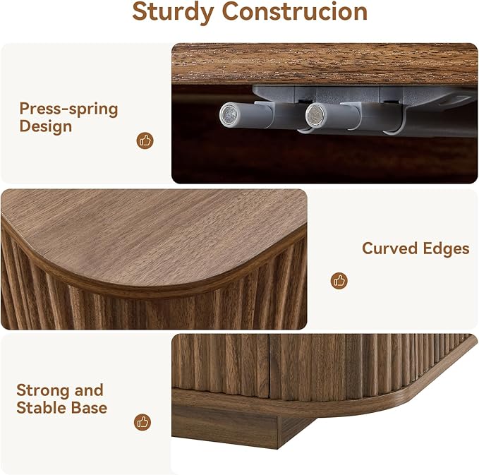 - 【Premium Quality & Stability】This TV stand is made from high-quality engineered wood with a veneer finish for durability. The sturdy frame ensures stability, while the fine craftsmanship guarantees a smooth surface and precise detailing. The doors are designed with a Press-spring design that eliminates the need for handles for a more coordinated and aesthetically pleasing look.