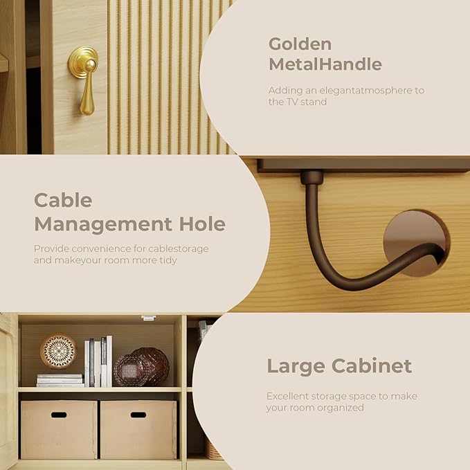 - Ample Storage Space: The fluted TV Stand with 4 open compartments and 2 storage cabinets to meet your daily storage needs