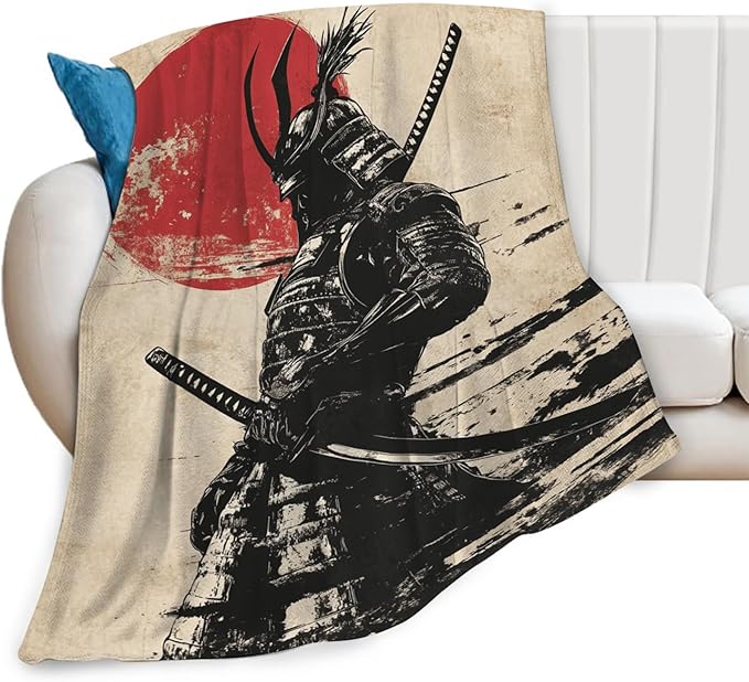 Tijuboni Japanese Samurai Throw Blanket Japanese Warrior Gifts for Men Women Girls Boys Kids Adults Soft Flannel Fleece Blanket for Couch Sofa Bed Home Decor 50"x60"