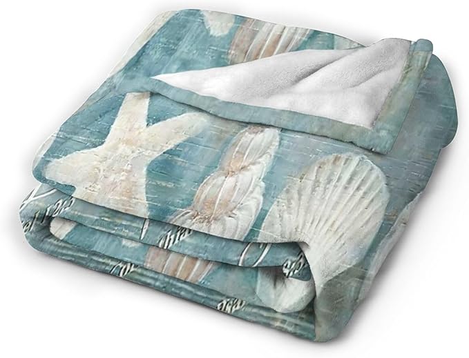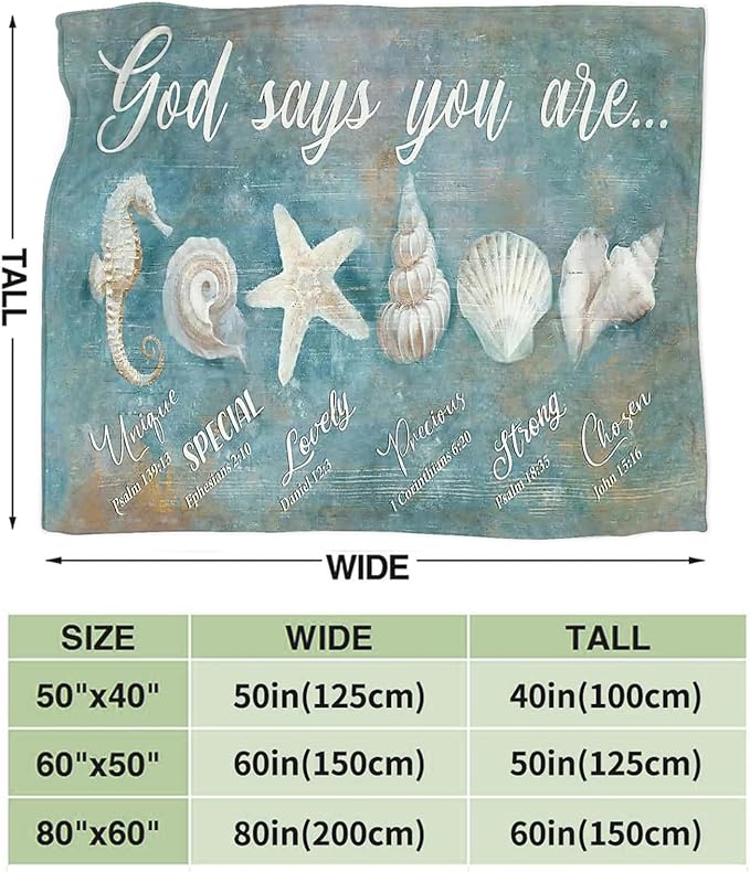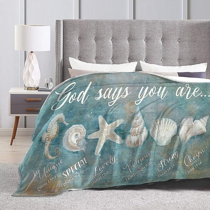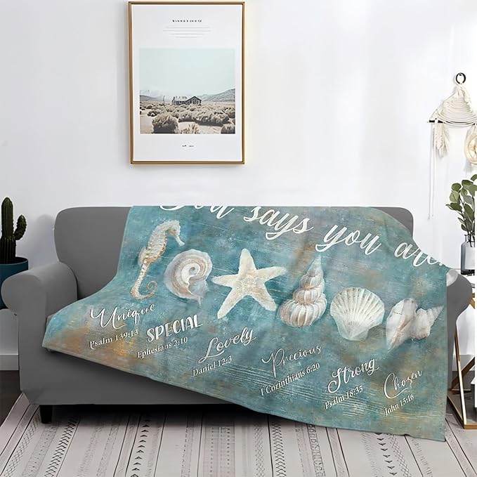 Tijuboni Ocean Seashells Throw Blanket - God Says You are - Beach Nautical Gifts for Women Men Girls Boys Kids Adults Soft Flannel Fleece Blanket for Couch Sofa Bed Home Decor 60"x80"