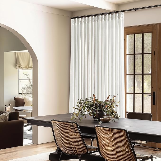 100 Inch Width Curtains 96 Inches Long Pinch Pleat Linen Semi Sheer for Patio Sliding Door Light Filtering Pleated Drapes Back Tab Ivory Beige White Extra Wide 100 x 96 Curtain for Living Dining Room