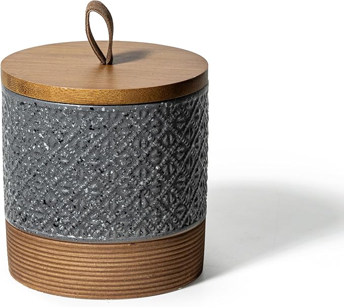 - Top-Grade Ceramic: This 20oz ceramic candy jar, with charming embossed patterns, is easy to clean and dishwasher-safe—ideal for kitchen or bathroom use