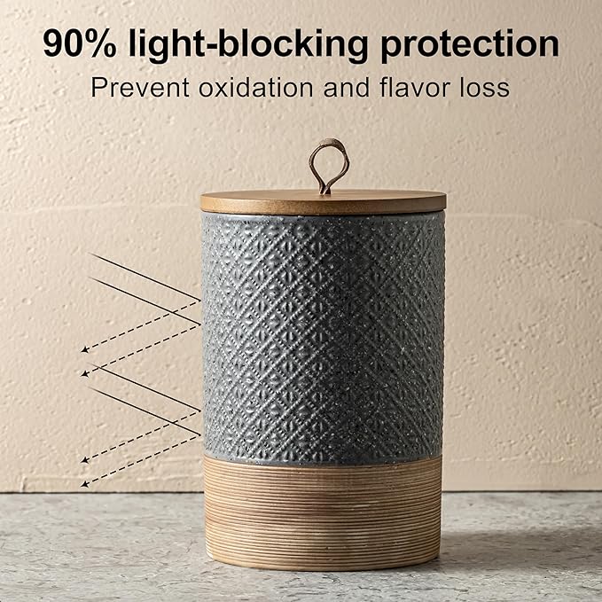 Ceramic Spice Jars with Lids, Coffee Canister with Airtight Lid, Small Kitchen Food Storage Jars for Spice Sugar Tea Bag, Stackable Decor Kitchen Jar for Counter - Gray & 20 fl.oz