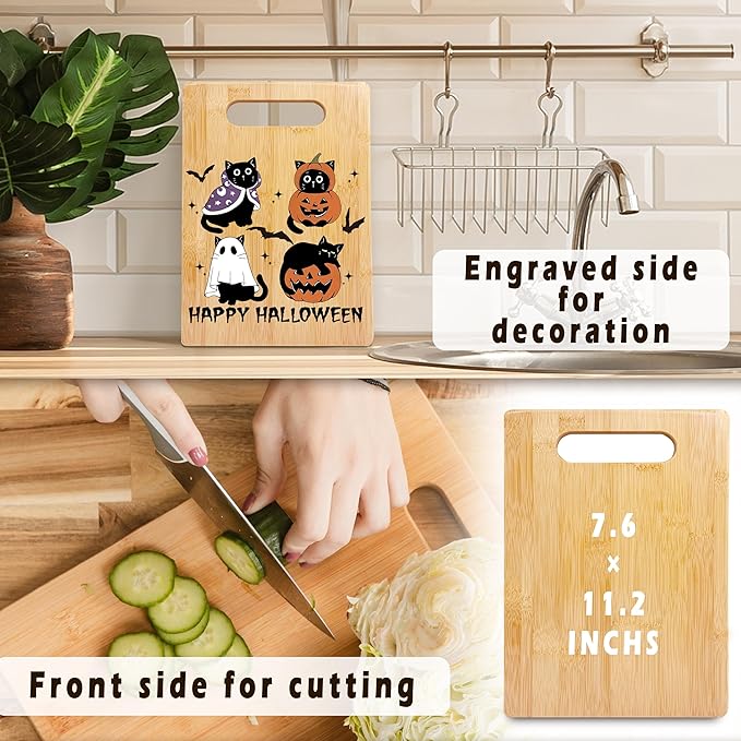SPBL&L Halloween Black Cat Ghost Cutting Board, Cat Lovers Gifts for Women, Happy Halloween Kitty Spooky Pumpkin Decorative Bamboo Cutting Chopping Board for Kitchen