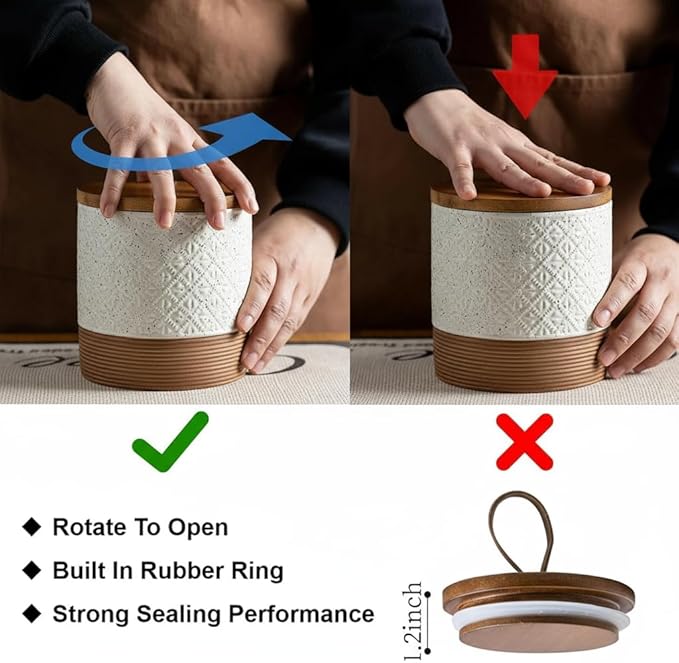 - Ultra-Tight Wooden Lid: The wooden lid with a strong rubber gasket creates an unbeatable airtight seal, keeping air, moisture far away from your coffee beans and ground coffee, locking in freshness for longer—making it an essential part of your Coffee Bar Accessories
