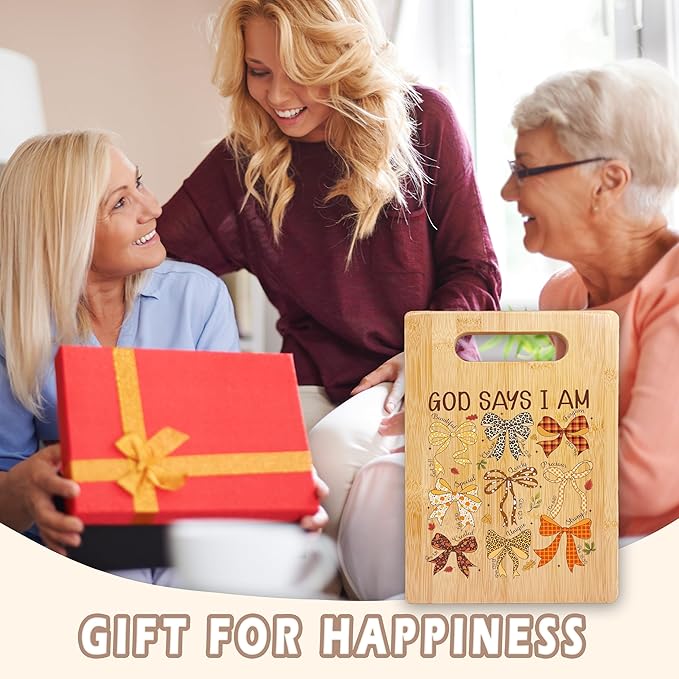 SPBL&L God Says I Am Christian Fall Cutting Board, Christian Kitchen Decor, Coquette Bow Autumn Thanksgiving Decorative Bamboo Cutting Chopping Board for Kitchen