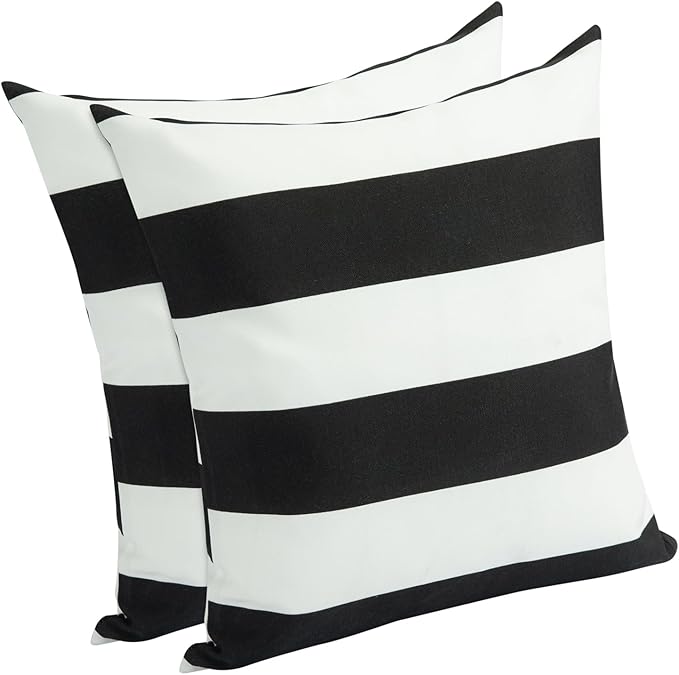 Waterproof Outdoor Throw Pillow Covers Set of 2,Home Decor for Garden Patio Furniture,Couch,Sofa 18 x18 Inch Decorative Pillows Cover Only,NO Insert(Black White)