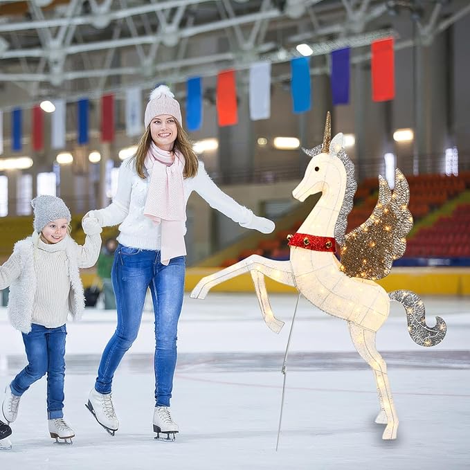 - 【Versatile Indoor and Outdoor Use】Whether you’re looking to brighten up your yard, porch, or indoor space, this versatile lighted yard unicorn decoration adds a festive touch to any location, making it a must-have for your holiday décor