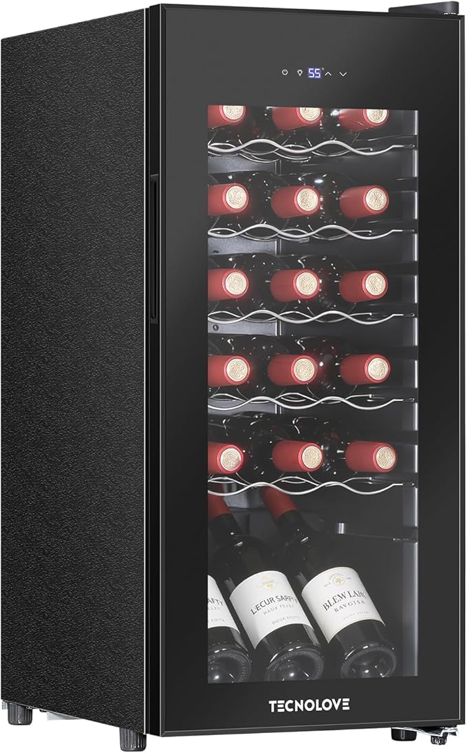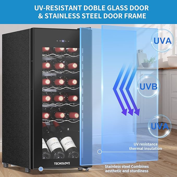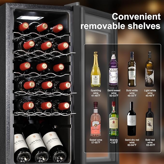 Wine Cooler with 41-68℉ Digital Temperature Control Stainless Steel 3.5 Cu.Ft 18 Bottle LED Light undercounter Glass Door Compressor Small Compact for Red, White and Champagne Beer