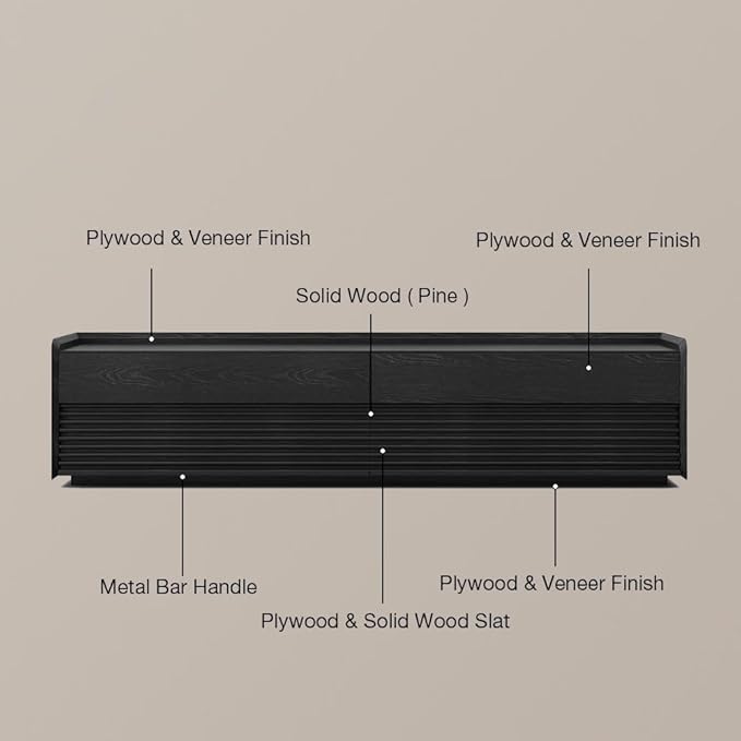 - Solid Wood Veneer with Mid-Century Charm: Made with premium solid multi-layered ash wood, this media console offers natural wood grain textures and sturdy craftsmanship that elevates modern and classic interiors alike
