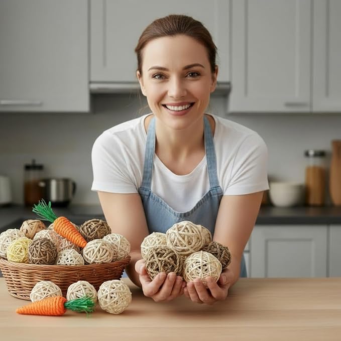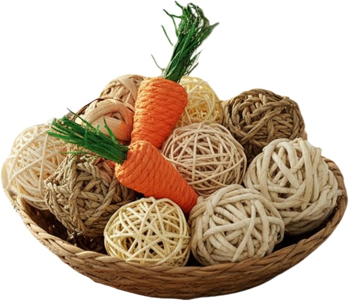 - Choice Kirosy decorative bowl filler pack : You get a variety of decorative balls in different sizes, colors and textures. The sizes vary from 2.8 inches to 4.7 inches; colors include beige and orange. Includes 8PCS handwoven rattan wicker balls and 2PCS carrot accents — all colors coordinate beautifully