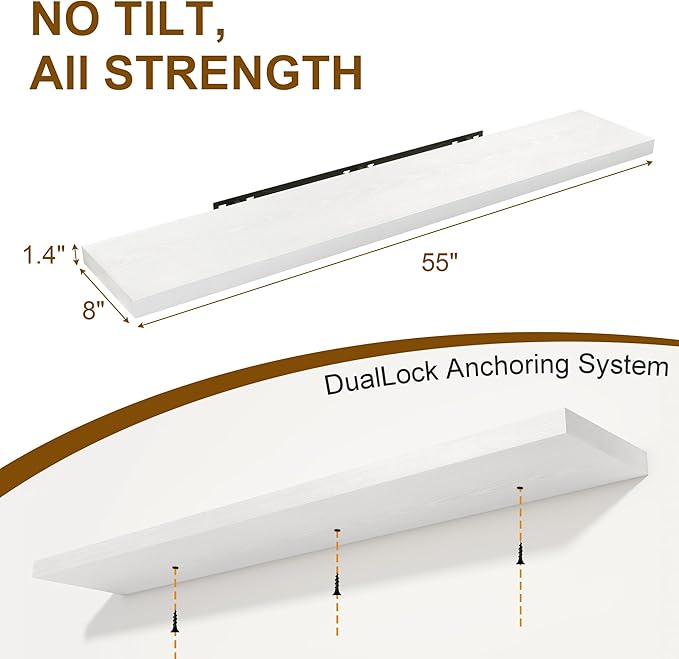 - 【8 INCH DEEP FLOATING SHELF】This extra deeper and thicker wall shelves are 8 inches in depth and 1.4 inches in thickness instead of the regular narrow floating shelves, you can put photos, pictures, DVD players, videos, books, toys, and some other knickknack on this beautiful display wooden shelf.