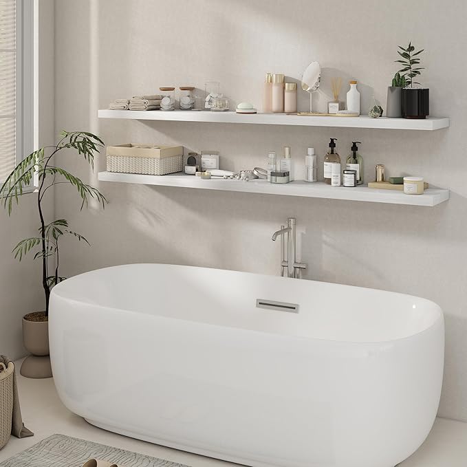 Fun Memories 72 Inch Floating Shelves for Wall, 8 Inch Deep Floating Shelf, Large Shelves with Invisible Bracket for Books|Storage, Rustic Wood Wall Shelf for Bedroom, Kitchen, Living Room, White