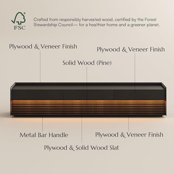 - Integrated LED Lighting: Enjoy the convenience of built-in LED lighting. The warm, 6-level adjustable lighting with remote control enhances the visual appeal of your TV console and makes your displayed items stand out
